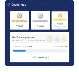 fun challenges Ignite results with Challenges Welcome to Challenges, where closing more deals isn’t just a target, it’s an art form. Spark healthy competition among